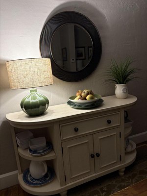 Just received my green lamp ! Love it. Color is perfect to go with other olive green items in room. Sits on a higher chest so the height is perfect.