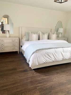 I bought these lamps to replace old dark lamps in my master bedroom. We recently pulled out all of our carpet and put in light warm colored hardwood flooring throughout our house. We painted our master bedroom a very soft grayish blue and bought an all white comforter and white curtains to give the room a Spa feel. Our furniture is a dark mahogany and these white lamps really helped brighten up the decor nicely.