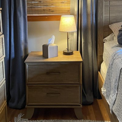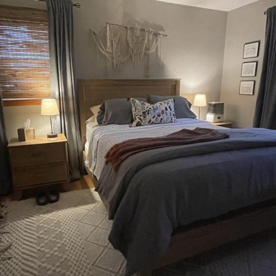 Love the natural texture of the shade when lit, and looks simple and clean. Highly recommended. I don’t like that the USB outlet is at the front of the base so cords are visible. Would prefer the USB was hidden on the side, in the back.