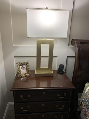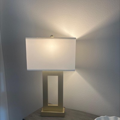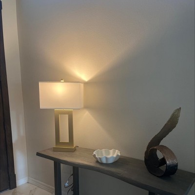- Modern luxe gold table lamp with rectangle design. From the 360 Lighting brand.