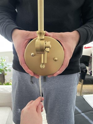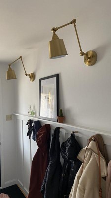 360 Lighting Mendes Modern Swing Arm Wall Lamps Set of 2 Brass Gold Plug-in Light Fixture Metal Shade for Bedroom Bedside Living Room Reading House