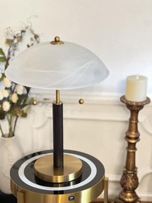 360 Lighting Mid Century Modern Desk Lamp 19 1/2" High Brown Wood White Frosted Glass Dome Shade for Bedroom Living Room Office