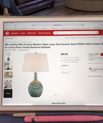 360 Lighting Modern Table Lamp 26" High Teal Glaze Ceramic Gourd White Fabric Drum Shade for Bedroom Living Room House Home Bedside Nightstand Office