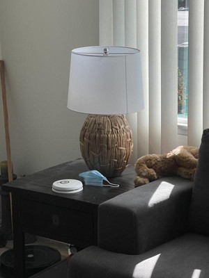 I really wanted to like this lamp because the picture of it online was very natural looking and perfect to put in the space I was looking for. Unfortunately, when it arrived it looked more like the woven pieces were not as together and round. It looked like big random pieces around a piece of metal (which the shape was dented looking and the metal shape was very visible). For the price, I was expecting a lot more, but it ended up looking like something that was forgotten in someone's basement. Soooooo disappointed and had to return.
