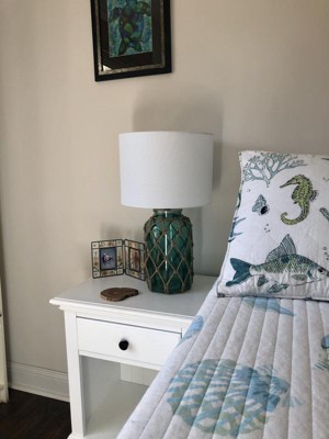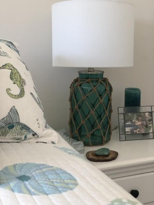 360 Lighting Nautical Accent Table Lamps 22.5" High Set of 2 Coastal Blue Green Rope Net Off White Drum Shade for Living Room Family Bedroom