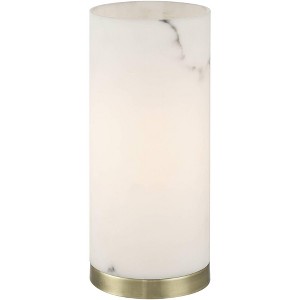 360 Lighting Renier 14" High Small Cylinder Modern Glam Accent Table Lamp Faux Alabaster Gold Brass Finish Metal Single White Shade Living Room
