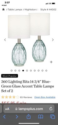 360 Lighting Rita Modern Accent Table Lamps 14 3/4" High Set of 2 Blue Green Glass with Table Top Dimmers White Drum Shade for Bedroom Living Room