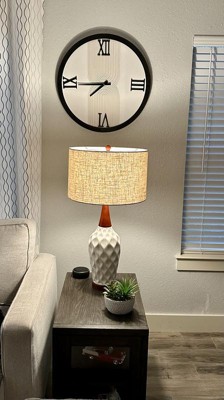 360 Lighting Rocco Modern Mid Century Table Lamp 30" Tall White Geometric Ceramic Wood Tan Fabric Drum Shade for Bedroom Living Room Bedside Office