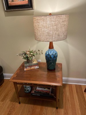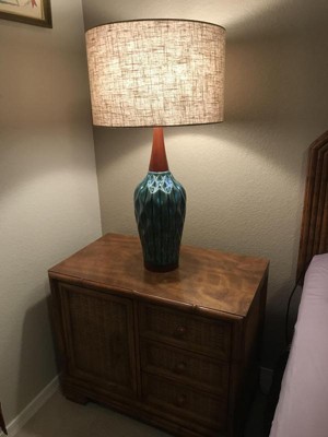 This lamp is not only mid-century modern pretty but will fit in any styled room. They are just the right height and the blue green base are pretty color. They they also appear to be quality made by the field look and findings of the switch. The electric cord is a little longer also if you don’t have an electric outlet nearby.