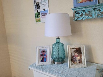 360 Lighting Ronald Modern Coastal Accent Table Lamp 22" High Blue Textured Glass Nickel Pole White Drum Shade for Bedroom Living Room Nightstand