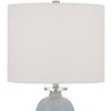 - Blue cloud finish ceramic base. White fabric drum shade.