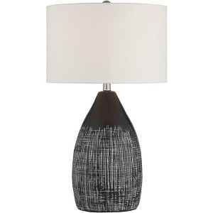- Black finish ceramic lamp base with a decorative abstract pattern. Because the ceramic glaze is hand-applied, there may be slight differences in color and pattern.