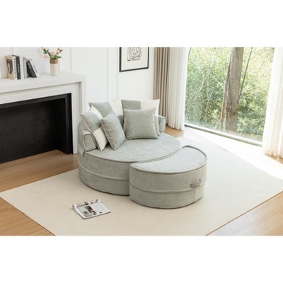 360° Swivel Barrel Accent Chair with Throw Pillow, Upholstered Boucle Armchair for Living Room, Bedroom, Office or Hotel, Green - ModernLuxe