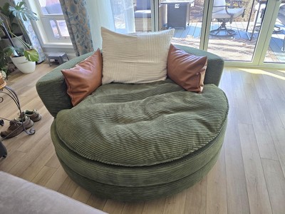 360° Swivel Sofa Chair - Corduroy Accent Barrel Chair with Dual-Layer Cushion & 3 Pillows, Beige - ModernLuxe