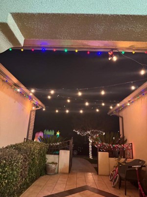 [This review was collected as part of a promotion.] Strung these up on the patio! They look great, and I like that the bulbs are a bit thicker & durable for outdoor use. Lights up nicely with solar power.
