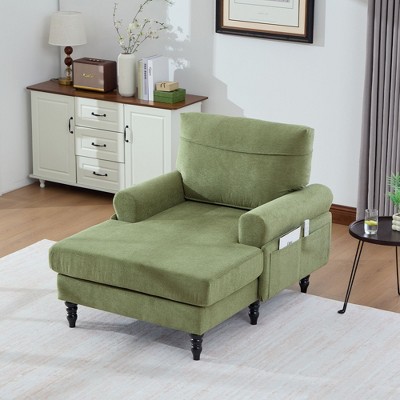 38.2''W Chaise Lounge Chair Indoor, Modern Sleeper Sofa Bed with Side Pockets and Carved Solid Wood Legs, Recliner Sofa Chair Bed Olive Green