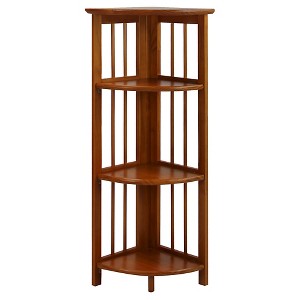 We've cornered the market on great bookcases! This 4-Shelf Corner Bookcase gives you storage room in an area that tends to go to waste--the corner. Effortless foldable engineering means you can transport or store with ease. Made of solid wood for lasting beauty and structural integrity. Complete your layout with a progressive piece that has classic appeal.