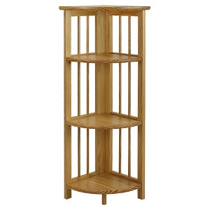 We've cornered the market on great bookcases! This 4-Shelf Corner Bookcase gives you storage room in an area that tends to go to waste--the corner. Effortless foldable engineering means you can transport or store with ease. Made of solid wood for lasting beauty and structural integrity. Complete your layout with a progressive piece that has classic appeal.