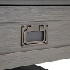 - Rustic design includes folding drawer pulls in an Antique Brass hardware finish