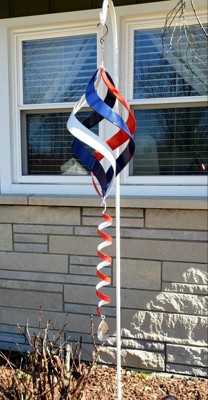 [This review was collected as part of a promotion.] The red, white, and blue outdoor wind spinner is very cute! It is large so the included shepherd's hook is the perfect height. It catches the wind nicely and spins with easy. It was easy to put together. I especially love the crystal piece on the bottom. It sparkles beautifully when the light catches it. I love how this wind spinner adds something unique to my yard.