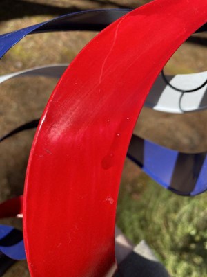 [This review was collected as part of a promotion.] This wind spinner is so pretty and nicely bad. Very durable and the colors are patriotic. It’s beautiful when the wind is blowing and adds awesome character to my yard. I love that it’s made with metal.