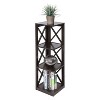 Add both function and style to an otherwise unused corner with the Oxford 3 Tier Corner Bookcase. Featuring an open space that provides 3 spacious shelves for decoration collections art and books. Available in multiple finishes, with a simply elegant crossed X design this piece can transform any space into something truly beautiful. Crafted for durability this piece will quickly become a staple in your home. Look for other items from the Oxford Collection sold separately.