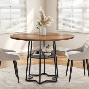 38.6'' Round Wood Dining Table with Hexagonal Metal Base and Central Storage Net