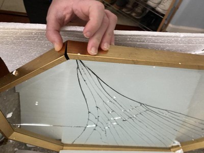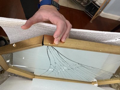 Both the original and replacement mirror arrives cracked with shards of glass everywhere upon opening. I cut myself both times I opened it and glass was all over because of the pieces in the styrofoam. I then had to waste time after cleaning up the glass everywhere and tending to my cuts, going back and forth with customer service regarding why I would be throwing it away and not attempting to repackage and return.