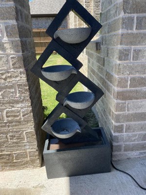 [This review was collected as part of a promotion.] This fountain offers the best of both worlds. You can see it from either side and it still looks amazing. I like the way that it offers the square sections and then offers the round bowls as well. . The contrast of the round and square gives such an interesting look. The way the water flows is really interesting ..It flows down and moves side to side. It also has LED lights.