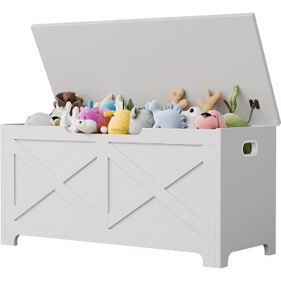 39.4" Storage Trunk w/ 2 Safety Hingesen Storage Bench w/ Side Handles, Storage Chest for Playroom