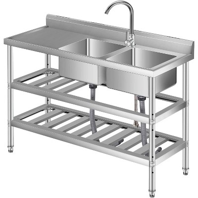 Freestanding Stainless Steel Utility Sink with Workbench & Drawer, Includes Faucet & Storage for Kitchen, Laundry Room, and Garage