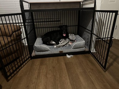 Literally the best kennel I’ve ever gotten my dog. It is like a mini penthouse and he loves it! He won’t leave it unless it’s for food or to go outside. It’s a major upgrade from the one he had before, and it doubles as furniture which is exactly what I wanted. It’s so sturdy and classy looking. Definitely not an eye sore. Still trying to figure out what to put on top of it!