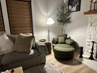 - [Modern swivel chair] Upholstered modern sofa chair design made of soft fabric, the single chair can rotate.
