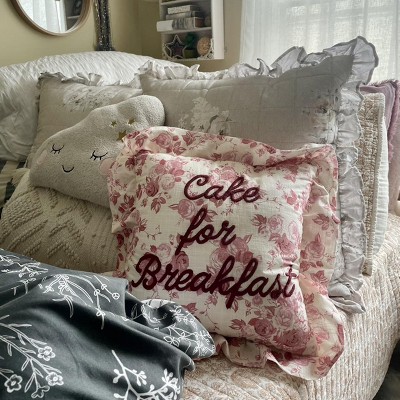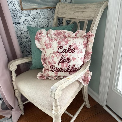 'Cake for Breakfast' Square Ruffle Throw Pillow Pink Floral