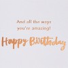 Celebrate someone special with this awesome birthday card! Playful lettering embellished by copper foil over interesting background shapes is complemented by a flattering message. The contemporary art look makes the card a keeper, while the inside design allows for plenty of room to add your own personal thoughts. This cool and eye-catching card will make them feel appreciated on their birthday and beyond!