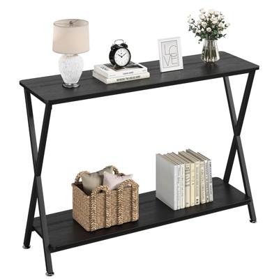 39" Console Table Industrial - Sofa Table for Behind Couch with Wood Top (Grey)