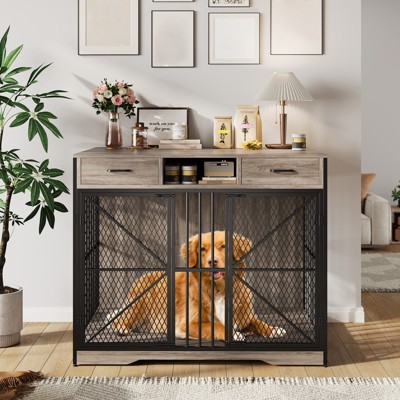 • 【Sturdy and Chew-Resistant Material】Dog crates is made of steel and wood material, this piece of dog furniture is sturdier and more chew-resistant than other dog crates, offering a lasting, stable, and safe retreat for your dogs. Besides, it offer a good visibility, so you can easily see and interact with your dog.