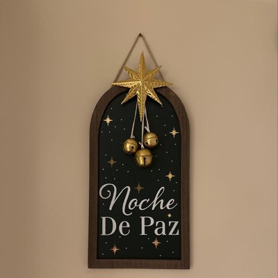 'Noche de Paz' with Metal Star and Bells Christmas Wood Wall Décor - Wondershop™: Vertical Hang