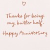 This cute little Anniversary card is syrupy sweet! The design features a whimsical illustration of a happy pair of waffles snuggled up together, with copper hot stamp accents to add a bit of shine! The message is lighthearted and includes several silly puns—A perfect anniversary wish for the couple who loves to laugh together yet still celebrate the special occasion!