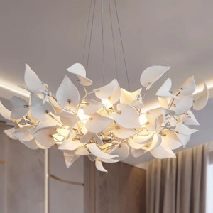 - The branch of the living room chandelier is made of metals,chandelier anti-corrosion, anti-rust, longer service life. Leaf is made of ceramic, high hardness, high temperature resistance, good light transmission.