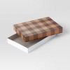 Add vintage charm to your holiday gifts with this 3-Count Christmas Modern Heritage Shirt Box Set from Wondershop™. This set includes three Christmas boxes — one featuring black checks on a brown backdrop, another one with a brown plaid design and one with "Merry Christmas" text in cheerful fonts — for festive charm. Made of paper, these rectangular gift boxes are ideally sized to fit various holiday gifts.