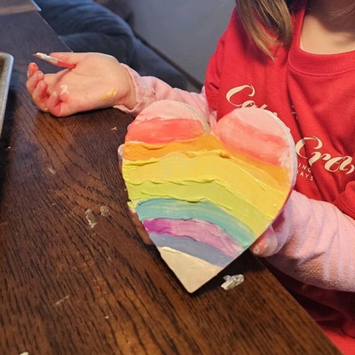 [This review was collected as part of a promotion.] I bought this for my kids to do as a Valentine’s Day activity but decided to paint one myself and really enjoyed it! I wish that there was a black paint in this set for accents but I do like the variety of colors included. The paintbrushes that come with the set are fine but I do wish there were (3) so that there is one for each heart. We have extra paintbrushes so it works out, but my kids would be fighting over the brushes if we didn’t have extra!