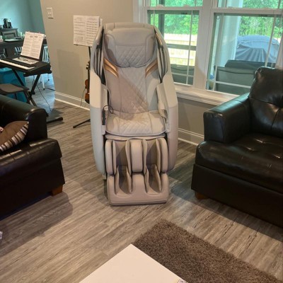 This is a great massage chair that has been impactful to me for reducing stress. I love all the features for different massage types and zones. I appreciate the leg extensions to get more impact to my calves. The chair was extremely well-packaged and was easy to transport from our driveway, into the house and into our lower level ourselves (two person effort for us). Instructions and set-up were all done within 30 minutes with the easy to read instructions.