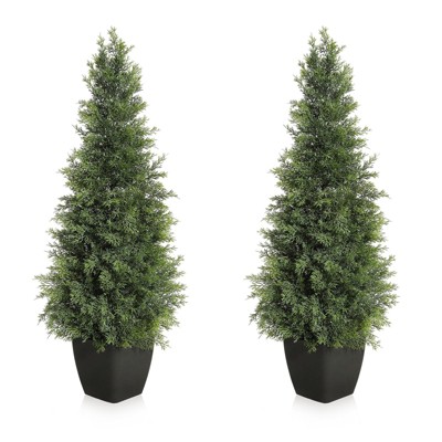 3FT Artificial Cedar Topiary Trees Set of 2, Potted Faux Cypress Plant, UV Resistant Fake Evergreen Shrubs, Realistic Topiary Tree for Front Door