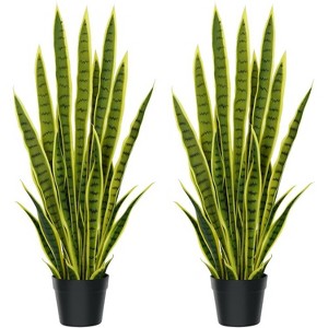 Vitalismo 3ft Artificial Snake Plant Realistic 24 Leaf Potted Faux Sansevieria Low Maintenance Indoor Outdoor Home Office Decor 2 Pack