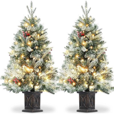 - Compact Festive Decor: This 3 feet small Christmas tree is perfect for apartments, offices, and desks, adding holiday cheer without taking up much space. • Pre-Lit Convenience: Comes with 40 warm white lights pre-installed, providing a cozy glow without the hassle of stringing lights yourself. • Snow Flocked Realism: Features a snow-frosted look that enhances the festive atmosphere with a realistic winter touch. • Ready to Use: Includes a sturdy pot and requires no assembly, making setup quick a