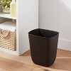 Help keep your vanity stay organized with this Open Vanity Wastebasket from Brightroom™. This plastic wastebasket features an open top design for easy disposal of trash. It features a rectangular silhouette with slightly curved edges at the bottom, while the compact size makes it easy to stash in smaller spaces. Showcasing a solid black hue, it's sure to add sleek style to your any decor.