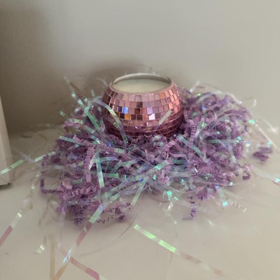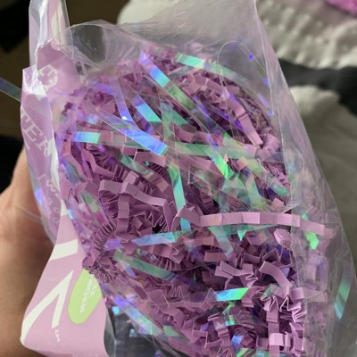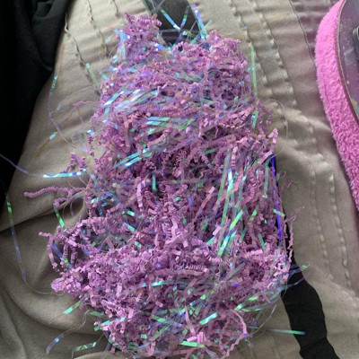 [This review was collected as part of a promotion.] This is the Spritz Easter in purple iridescent. It is a large bag of purple paper shreds and iridescent clear plastic shreds. This is really nice because the paper adds a lot of volume but the glittery iridescent makes sure your display will shine and stand out. When I have this featured candle lit the display shines on my walls and ceiling and makes the grass glimmer. This comes at a great value as you can spread out the grass for multiple uses. I received an incentive to write this review.