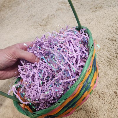 [This review was collected as part of a promotion.] I genuinely love Easter grass. I love the mess and the nostalgic feel every year I pull it out. This purple color is so much fun. A mix of paper and plastic, it pulls apart easy, is thick quality, and stuffs well. You can see it in use with the Spritz Large Disco egg that I bought. I plan to stuff it with candy for a fun surprise when you open it. My little kiddos love to pull the paper apart and dunk their hands. I received an incentive to write this review.