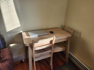 [This review was collected as part of a promotion.] Very difficult to get the desk together, tried so many times and the top part just wouldn’t fit as I couldn’t get the legs in the right position. That being said, the wood is beautiful. I’m using it as a desk in my room while folded and I love!
